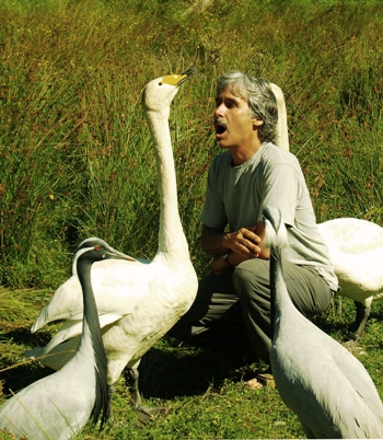 Inlassablement, nous nous sommes attelés à être les ambassadeurs des oiseaux et en particulier de ceux avec lesquels nous avons eu le privilège de partager leurs envols. C’est au travers des photos, films, vidéos, interview, des présentations en vol, des baptêmes de l’air en compagnie de nos oiseaux que nous partageons la beauté, les difficultés dans leur milieu naturel, leur singularité d’espèces et d’individus, avec des gens du monde entier. Car les oiseaux avec lesquels nous volons, sont des oiseaux migrateurs, ils n’ont pas les frontières des hommes. Cependant, elles subissent la pression humaine agricole, de chasse, industrielle, de l’urbanisme…